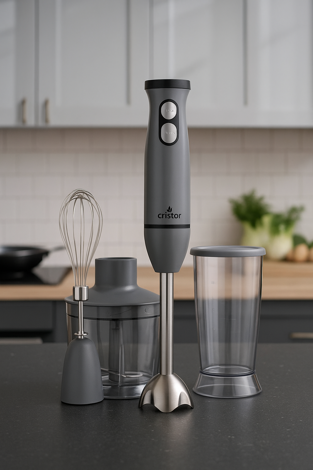 Bras Mixeur 3 en 1 CRISTOR Bras mixeur, Hachoir et Bras Fouet -500 W- 500 ML – Blanc
