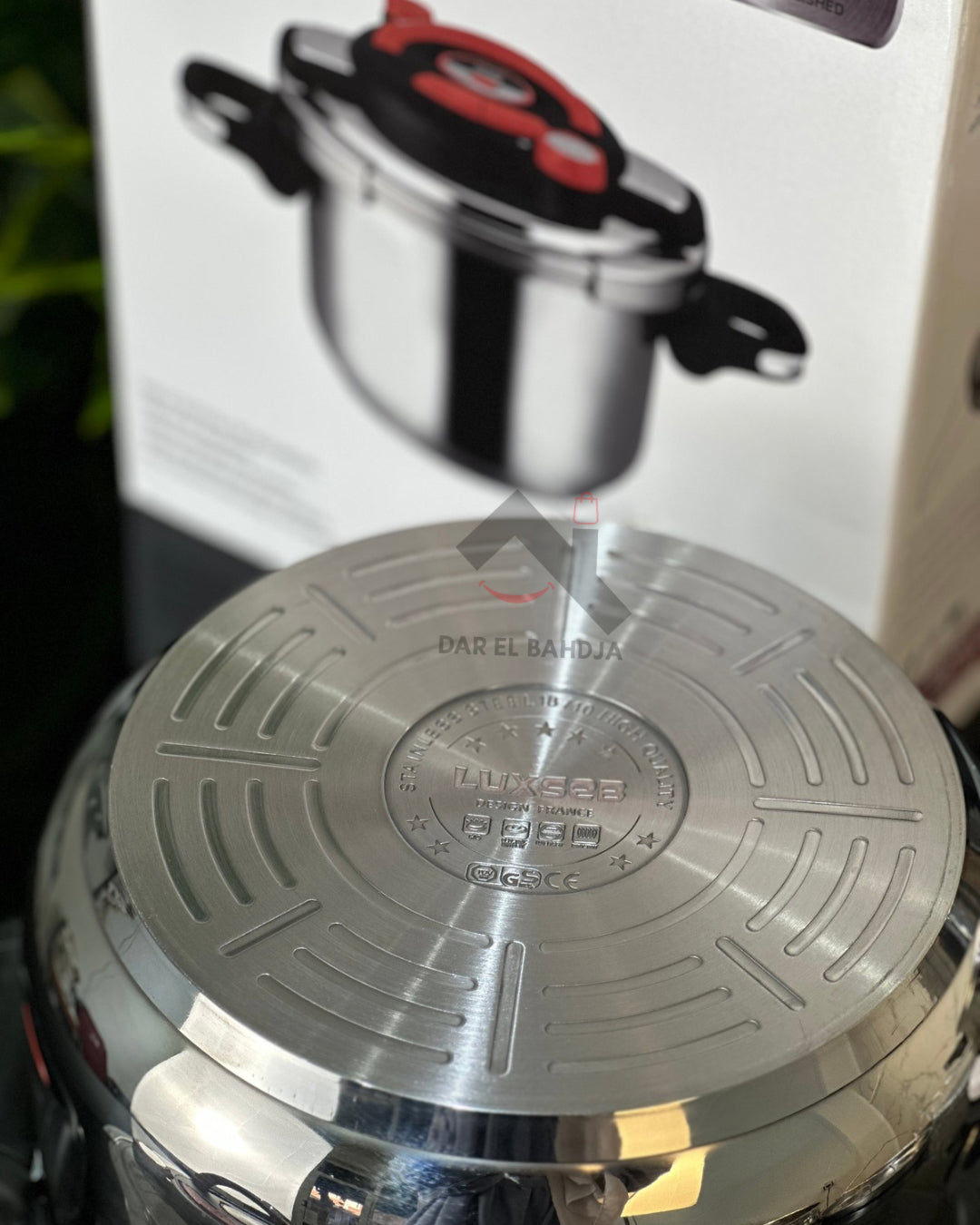 طنجرة ضغط كليبسو LuxSeb مصنوعة من الإينوكس المقاوم للصدأ 18/10، بتصميم فرنسي يجمع بين العملية والجمال. تأتي بحجمين 5 لتر و7 لتر لتلبية جميع احتياجات الطهي، مع نظام أمان متطور وسهولة في الاستخدام.