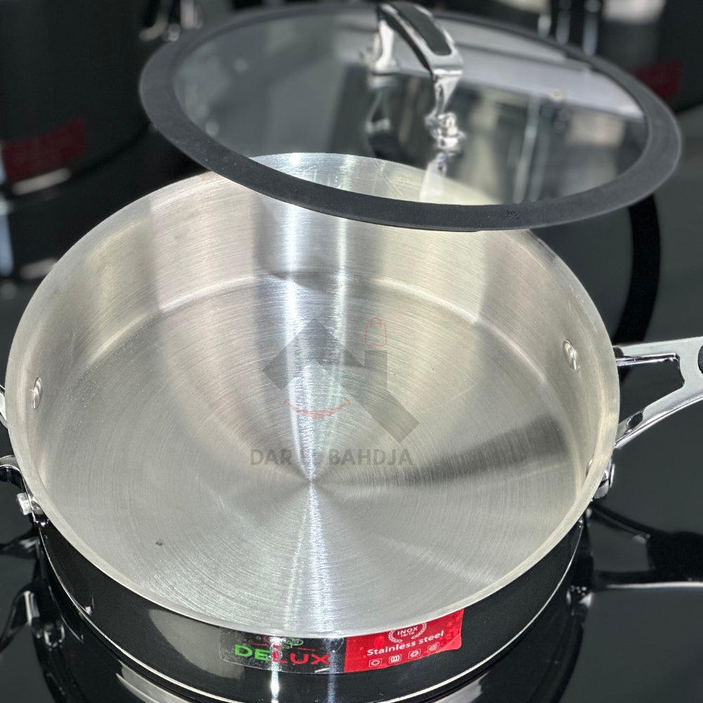 - غطاء زجاجي مقاوم للحرارة يسمح لكِ بمتابعة الطهي بسهولة دون رفع الغطاء